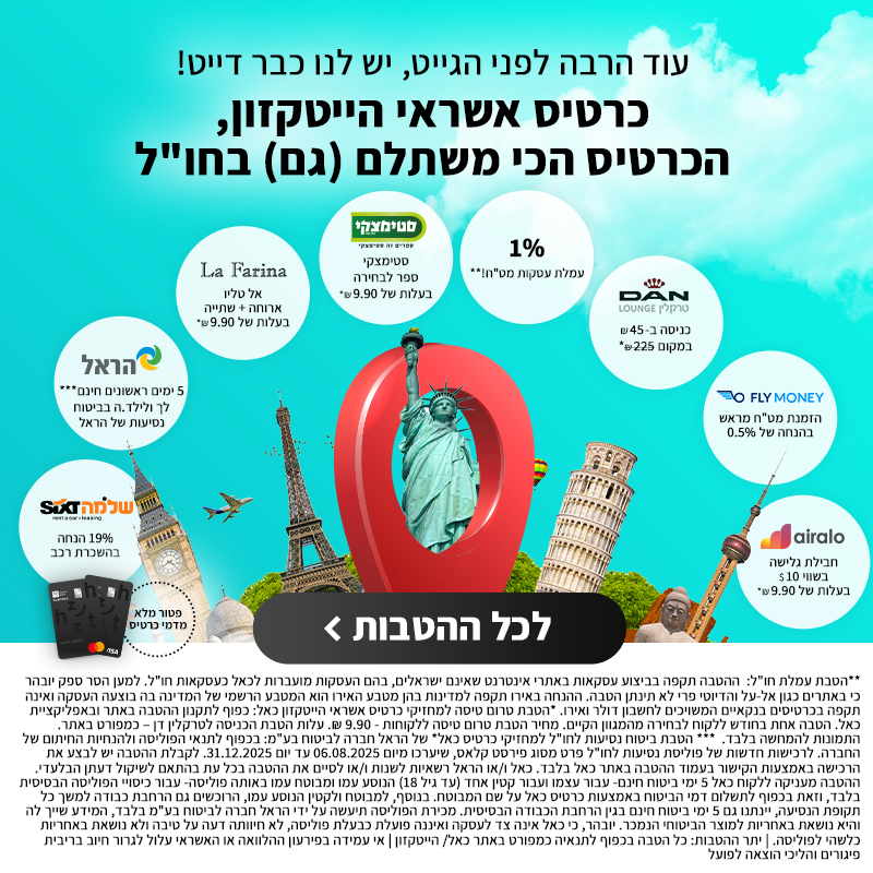 עד 20 אחוז הנחה לרשתות מזון, תיירות, מסעדות ואופנה arrow
