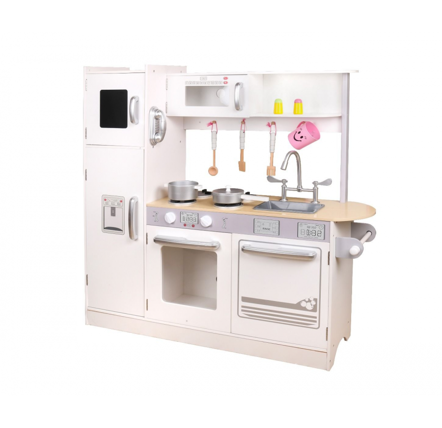 מטבח עץ גדול לילדים סט כלים וקולט לבן