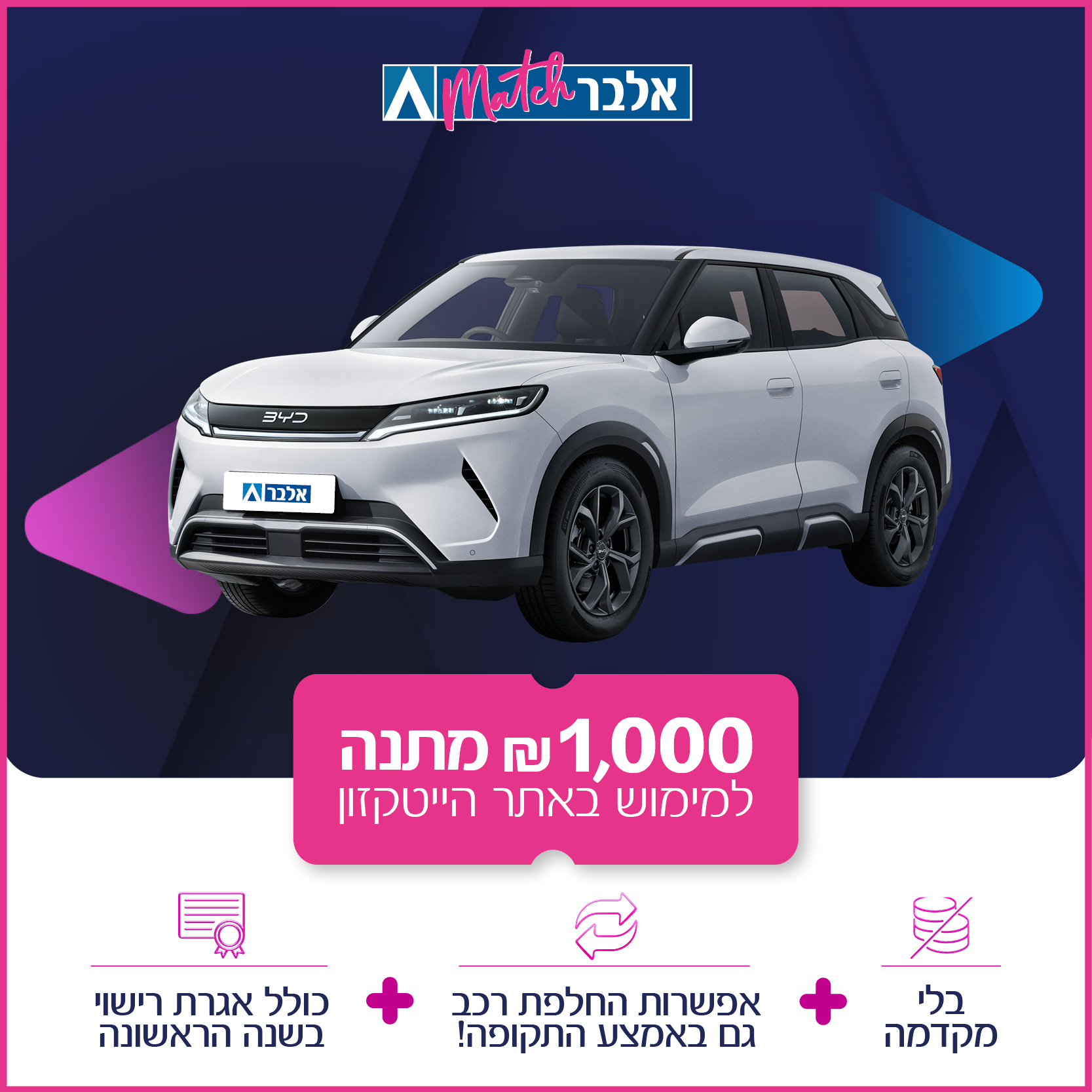 מבצע שובר של 1500 ש"ל לעסקאות שייסגרו מ 15.11.25 עד ל 30.11.25 (לרכבים עד 184,990 ₪), לחברה אין אחריות על טיב השובר, השובר יישלח ללקוח עד 14 ימי עסקים לאחר מסירת הרכב החדש. בעסקאות מבצע אלו יהיה פיצוי מוסכם בהחזרה מוקדמת של : 3 תשלומים מראש ב 12 חודשים הראשונים ותשלום מראש ב 24 חודשים הנותרים.