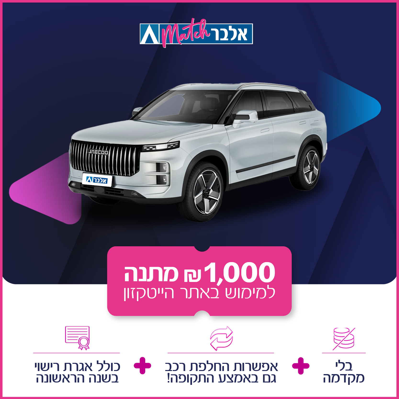 מבצע שובר של 1500 ש"ל לעסקאות שייסגרו מ 15.11.25 עד ל 30.11.25 (לרכבים עד 184,990 ₪), לחברה אין אחריות על טיב השובר, השובר יישלח ללקוח עד 14 ימי עסקים לאחר מסירת הרכב החדש.  בעסקאות מבצע אלו יהיה פיצוי מוסכם בהחזרה מוקדמת של :  3 תשלומים מראש ב 12 חודשים הראשונים ותשלום מראש ב 24 חודשים הנותרים.