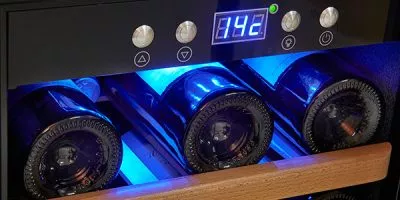 תאורת ה-LED הכחולה מאירה את אוסף היין בצורה אופטימלית, מונעת התחממות בתוך המקרר ותורמת לחיסכון באנרגיה.
